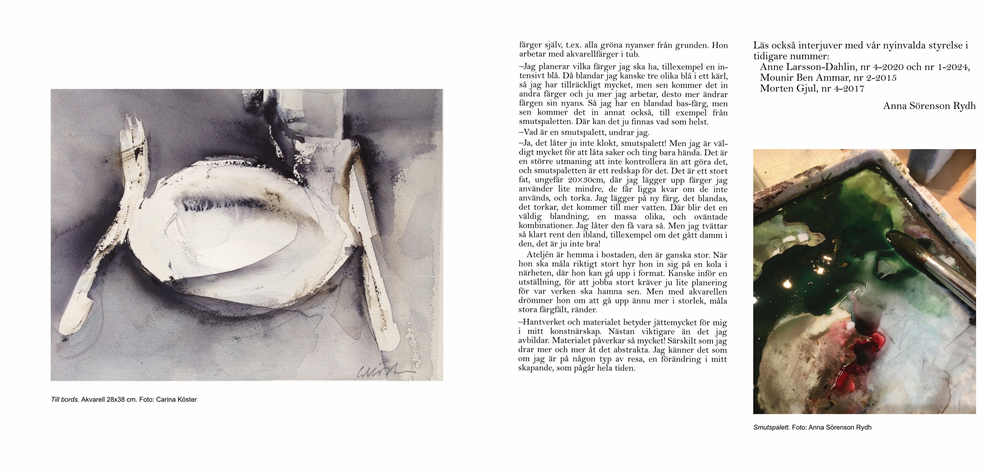 Artikeln kom ut i magasinet “Akvarellen” som är Nordiska akvarellsällskapets tidning. Det är en intervju av Anna Sörenson Rydh.